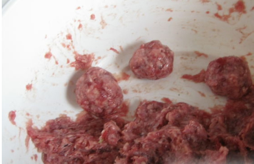 4. Взбейте слегка белок. Затем разделите фарш и сделайте фрикадельки величиной с грецким орехом
