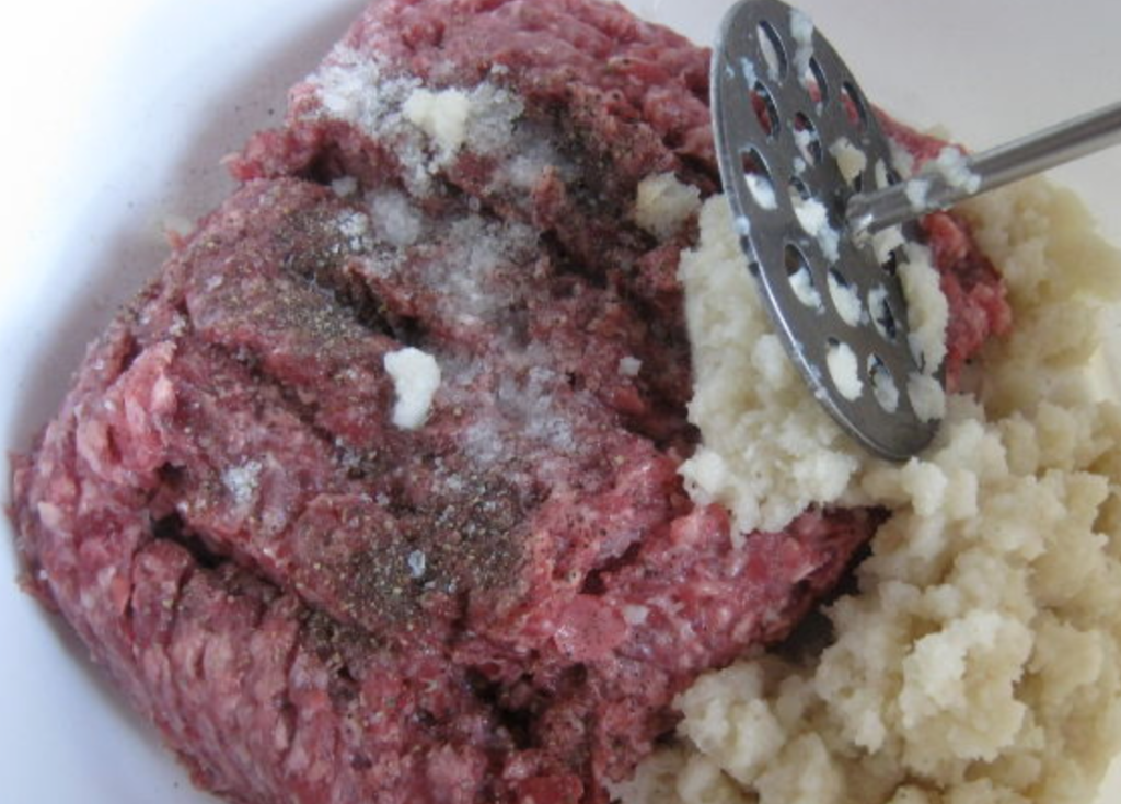- Репчатый лук – 1 шт. (1/2 в фарш, ½ в поджарку)