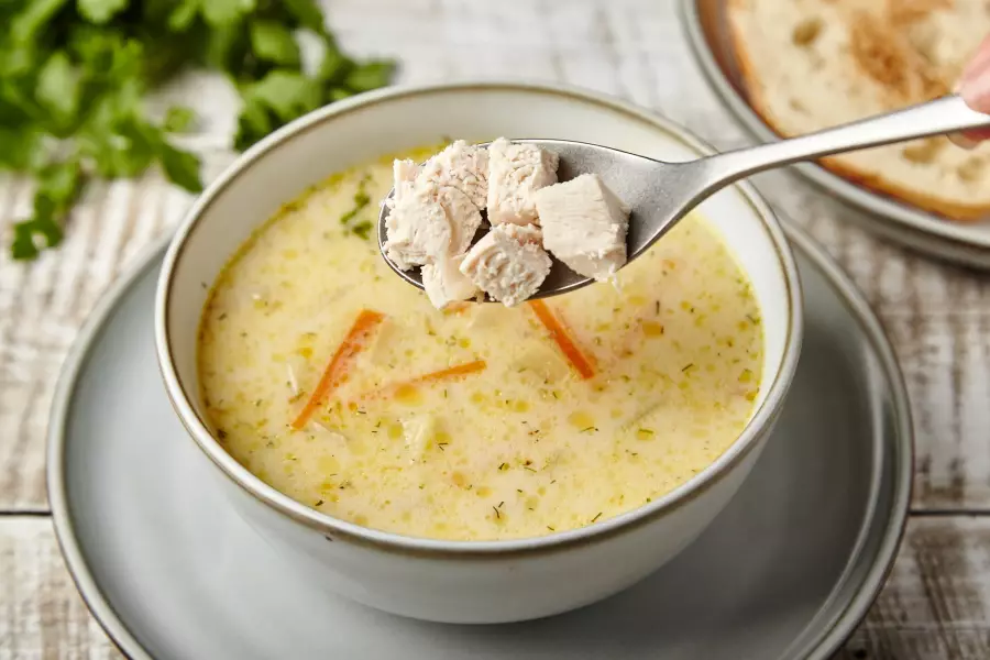 Вкусный сырный суп-пюре из плавленого сыра с курицей