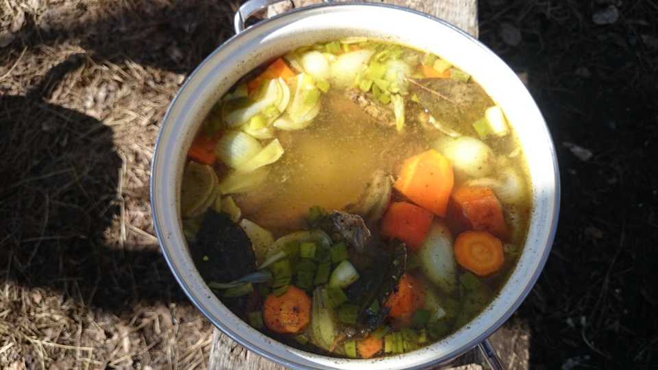 - Ингредиенты: Суповой набор – 1 порция, вода – 3 л, соль – 1 ч.л., лавровый лист – 1-2 шт, перец черный горошком – 3-4 шт.