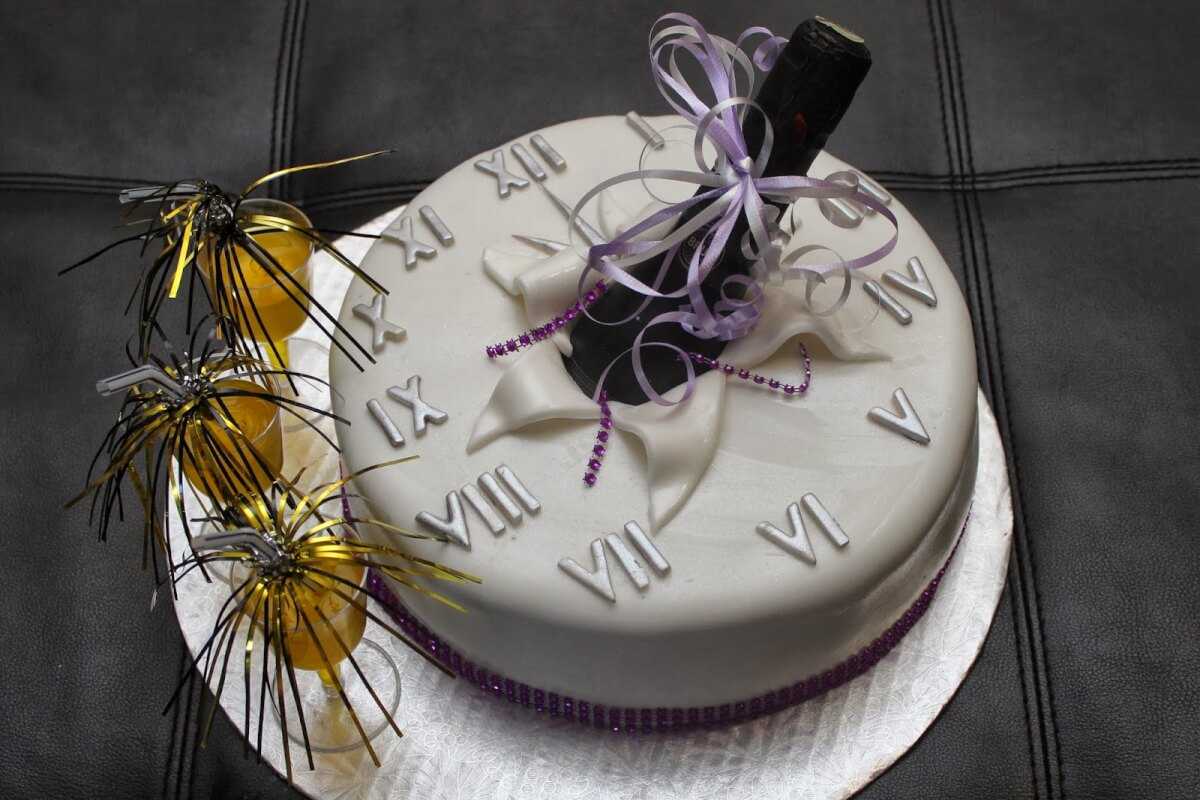 Обычный круглый домашний торт можно очень оригинально украсить, изобразив на нем куранты с Красной Площади, нарисовать деда Мороза или Снегурочку