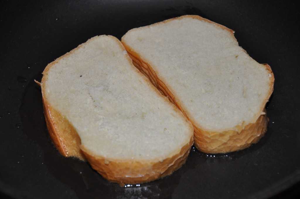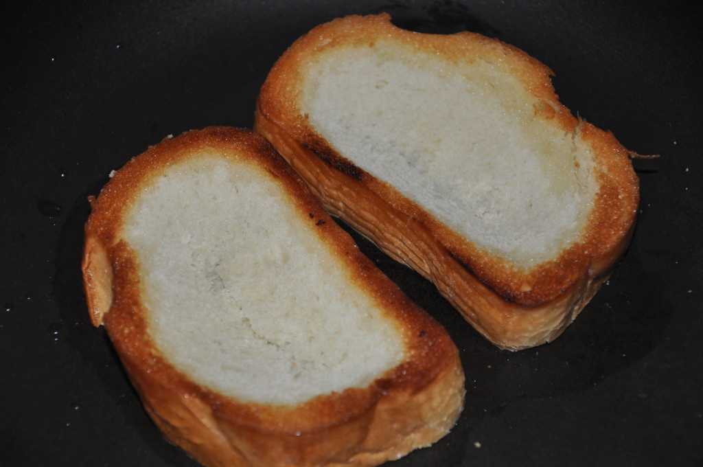Обжариваем хлеб до золотистости.