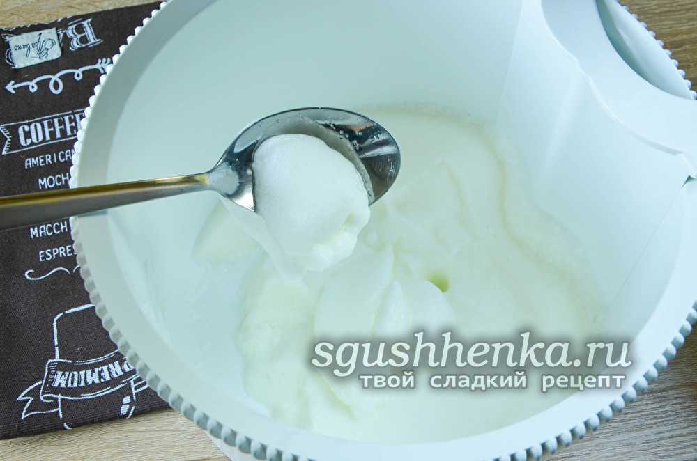 - Когда белки с сахаром превратятся в густую массу и при набирании в ложку не будут менять форму, приступить к выпеканию.