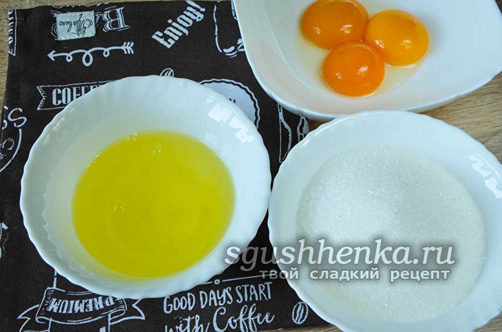 1. Подготовьте ингредиенты: белки отделите от желтков; сахар и ванильный сахар пересейте через сито.