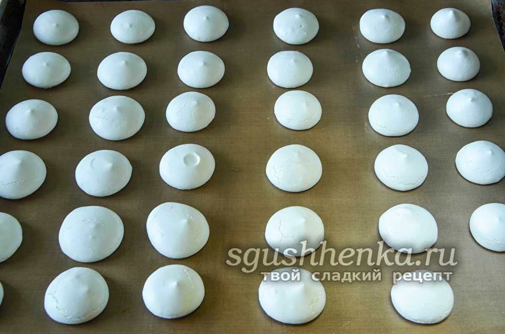 Если вы хотите получить меренги кремового цвета, сушите изделия в течение 2 часов при температуре 120 С.