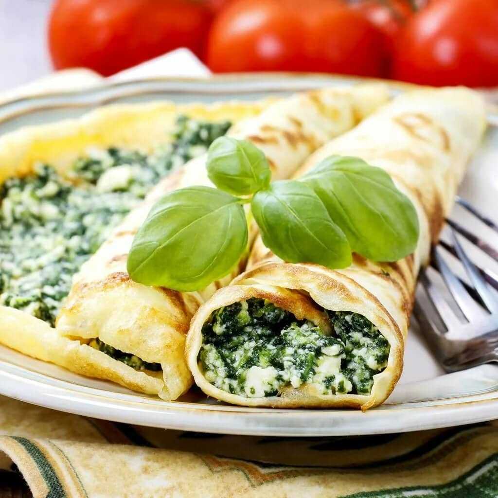 Блинчики с несладкой начинкой из творога, укропа, петрушки и чеснока