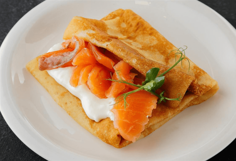 Нежные блины с рыбой и сливочным сыром