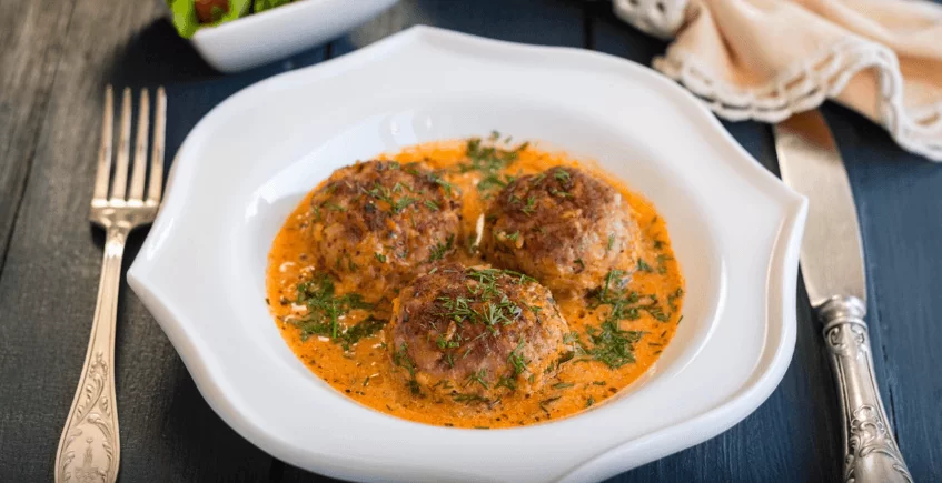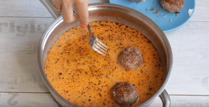 Тефтели с подливкой из сметаны и томатной пасты, приготовленные на сковороде:
