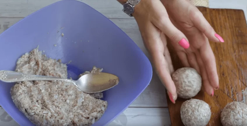 3. Из получившейся мясной массы сделать шарики среднего размера и положить в глубокую емкость с толстым дном.