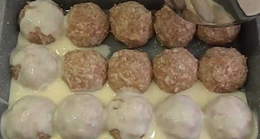 Получившимся сметанно-томатным соусом заливаем мясные шарики.