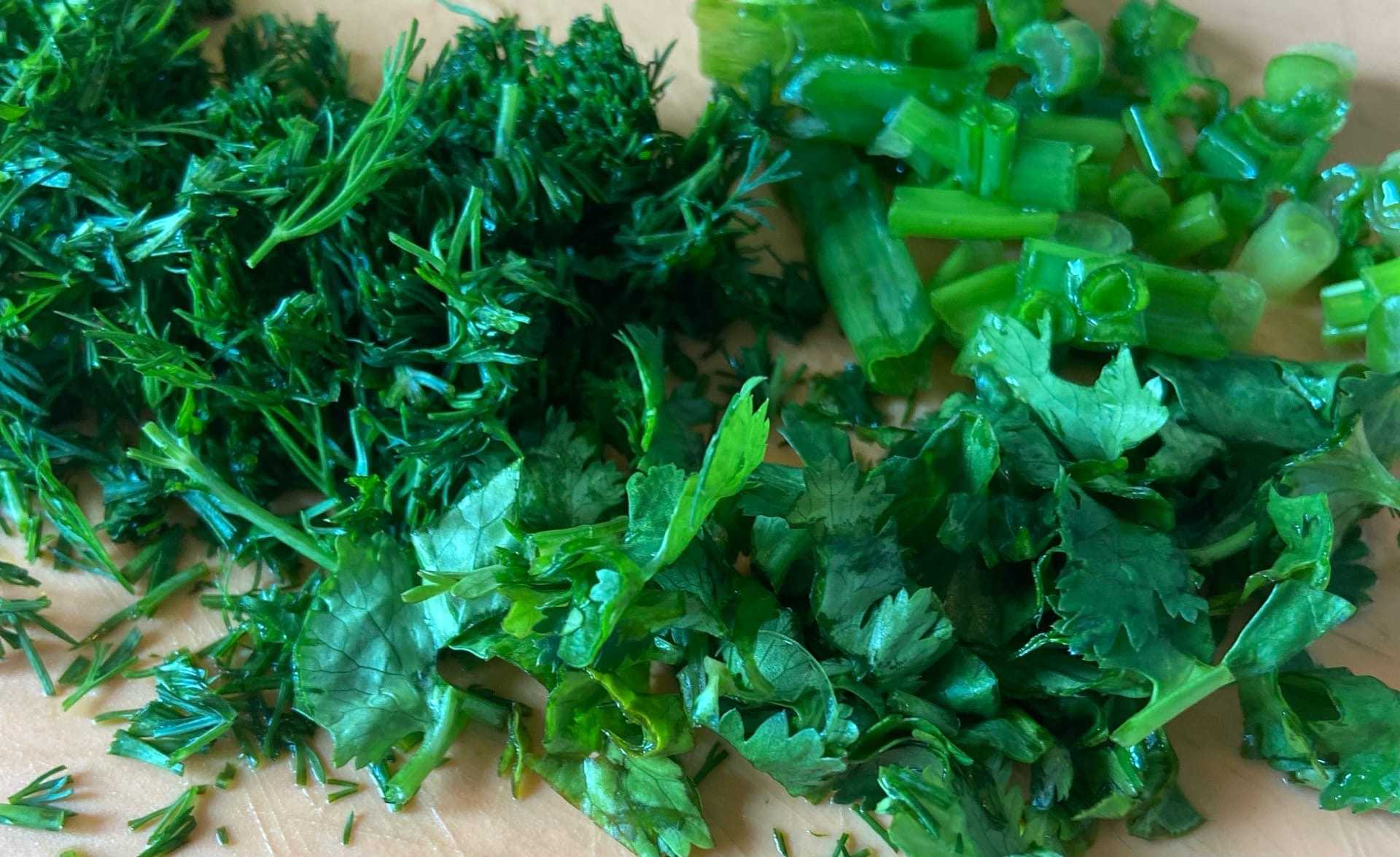 - зелень свежая (у меня кинза, укроп и зеленый лук, всего не чуть чуть) — по вкусу