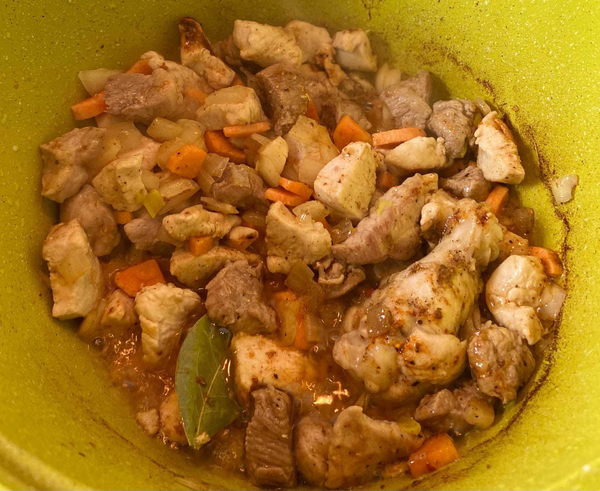 – Вместо свинины можно так же использовать куриное мясо. Говядина для этого блюда слишком жесткая, на мой вкус.