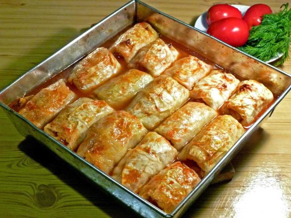 Запеченные в духовке голубцы в томатно-сметанном соусе