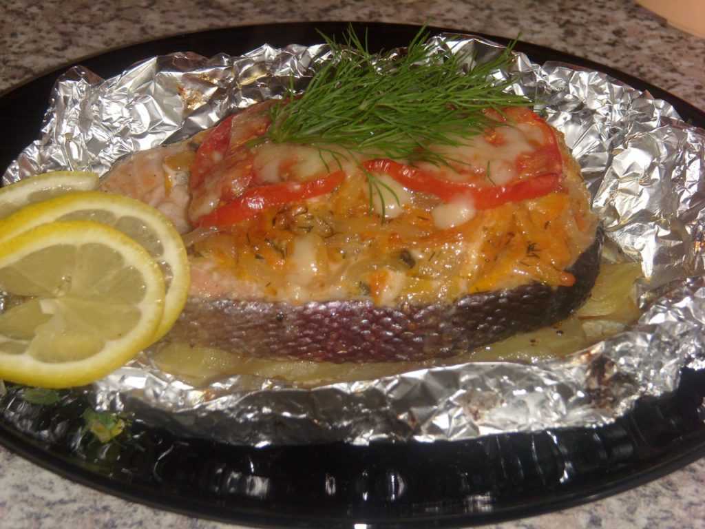 Чтобы не испортить стейки горбуши и не сделать их пересушенными, воспользуйтесь этим рецептом. Запекайте куски рыбы в лодочках из фольги. Это раз! Кроме того, добавьте к рыбе дополнительные ингредиенты, благодаря которым образуется много соков. Это два! В результате получится пропитанная соками, мягчайшая и нежнейшая рыбка. Это какое-то неземное удовольствие. Приготовим вместе?