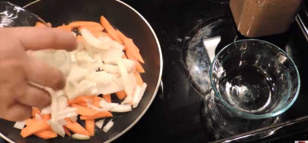 На отдельной сковороде обжарьте овощи, лук и морковь, до мягкости.
