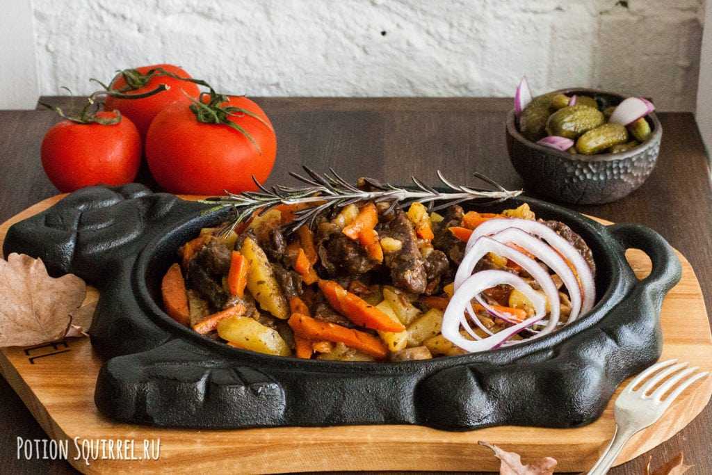 От того, какое мясо вы возьмете, будет зависеть размер ломтиков овощей. Чем дольше время приготовления, тем крупнее должны быть овощи, чтобы не превратиться в кашу за два часа тушения. Для жесткой говядины лучше порезать картофель и морковь как можно крупнее. Подойдут половинки или четвертинки. Для мраморной достаточно нарезать все крупной соломкой.