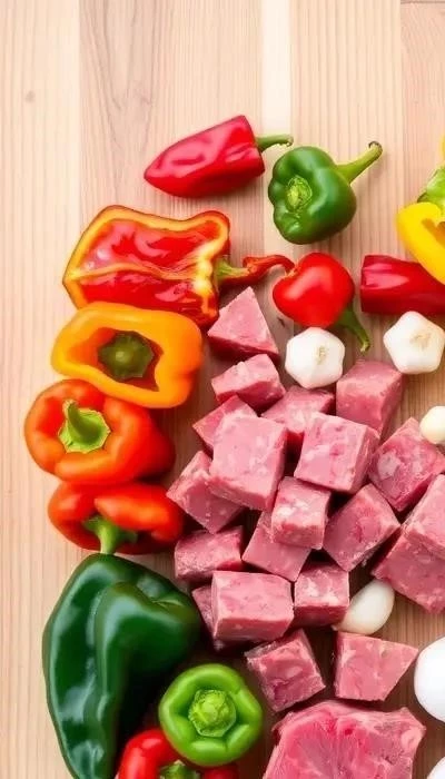 Совет: При выборе говядины обращайте внимание на ее цвет – он должен быть насыщенным красным. Мясо должно быть упругим и не иметь неприятного запаха. Болгарский перец выбирайте яркий и плотный, без повреждений. Лук должен быть твердым и сухим.