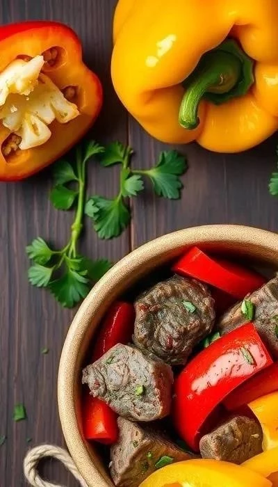 - С грибами: Добавьте к говядине нарезанные грибы (шампиньоны, вешенки) вместе с болгарским перцем.