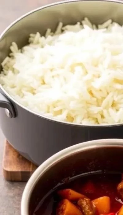 - Приготовление риса: Пока тушится говядина, отварить рис до готовности согласно инструкции на упаковке.