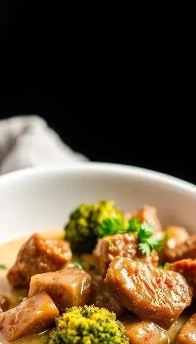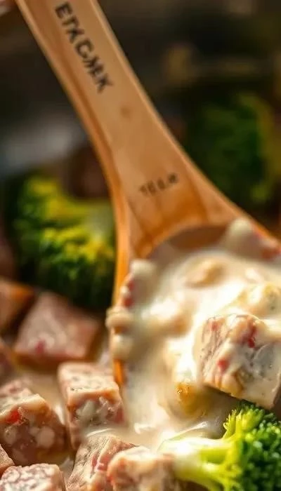 - Заливаем сливками: Постепенно влить сливки, постоянно помешивая, чтобы не образовались комки. Довести до кипения, уменьшить огонь и тушить под крышкой 10-15 минут, чтобы говядина стала мягкой.