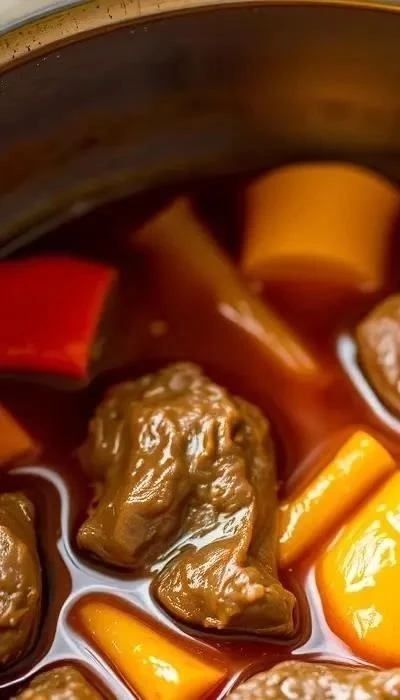 - В мультиварке: Обжарьте говядину и овощи в режиме «Жарка». Затем добавьте остальные ингредиенты и тушите в режиме «Тушение» в течение 40-60 минут.