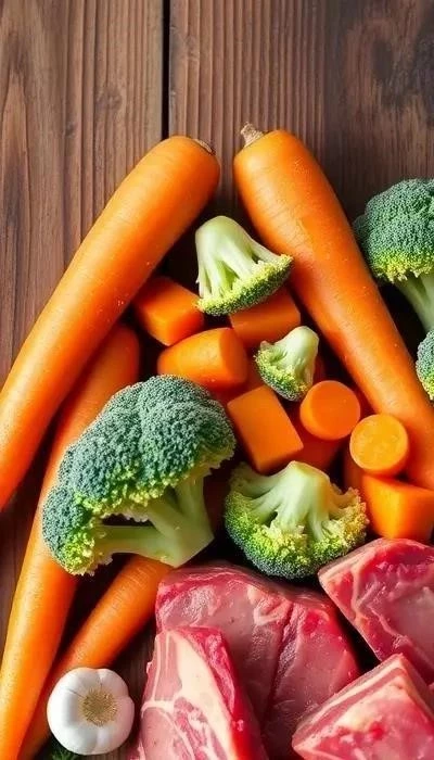 - Подготовка ингредиентов: Говядину промыть, обсушить и нарезать небольшими кубиками или полосками. Брокколи разделить на соцветия. Морковь очистить и нарезать кружочками или соломкой. Лук очистить и нарезать полукольцами. Чеснок измельчить.