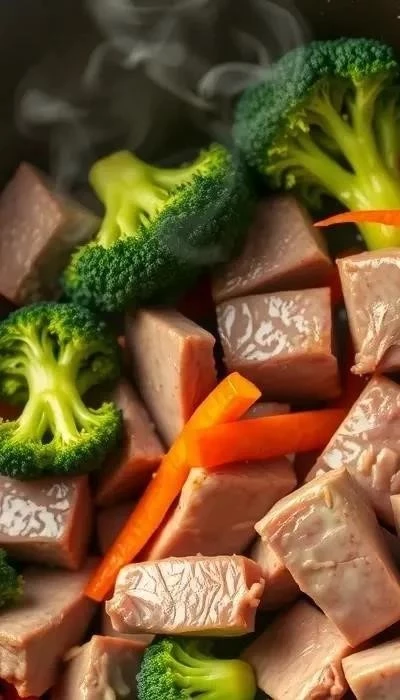 - Тушение говядины с овощами: Вернуть говядину в сковороду к овощам. Добавить брокколи, оставшийся соевый соус, мед (или сахар), воду и имбирь (если используете). Довести до кипения, затем уменьшить огонь, накрыть крышкой и тушить 15-20 минут, пока говядина не станет мягкой.