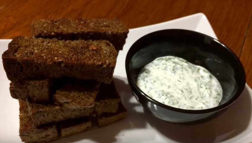 Гренки из черного хлеба с чесноком с таким соусом гораздо вкуснее.