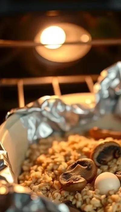- В духовке: Обжарьте лук и грибы на сковороде, затем переложите их в кастрюлю, добавьте гречку и воду. Накройте кастрюлю крышкой и поставьте в разогретую до 180 градусов духовку на 30-40 минут.