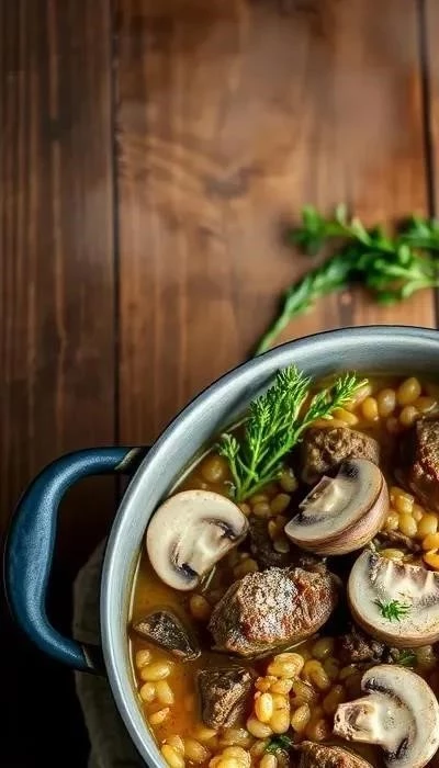 - Подаем: Подавайте перловку с говядиной и грибами горячей, посыпав свежей зеленью.