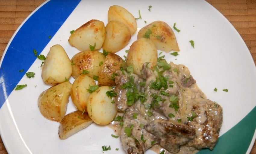 Еще один рецепт говяжьей печенки по-строгановски. Готовиться она в другом соусе, а получается очень нежной и мягкой. Любители ливера обязательно оценят данное блюдо. Оно очень хорошо гармонирует с рисом, картофельным пюре и макаронами.