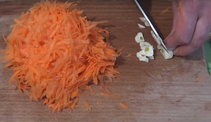 - Добавьте мелко нарезанный лук и чеснок и жарьте еще 5 минут.