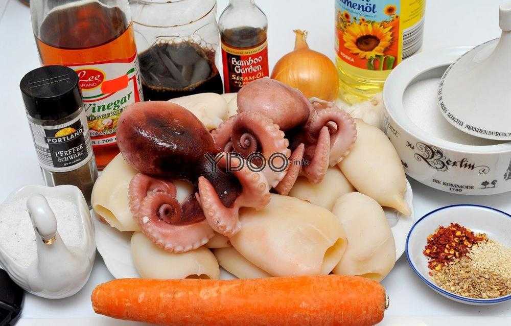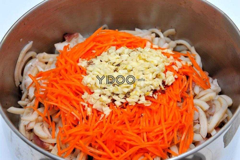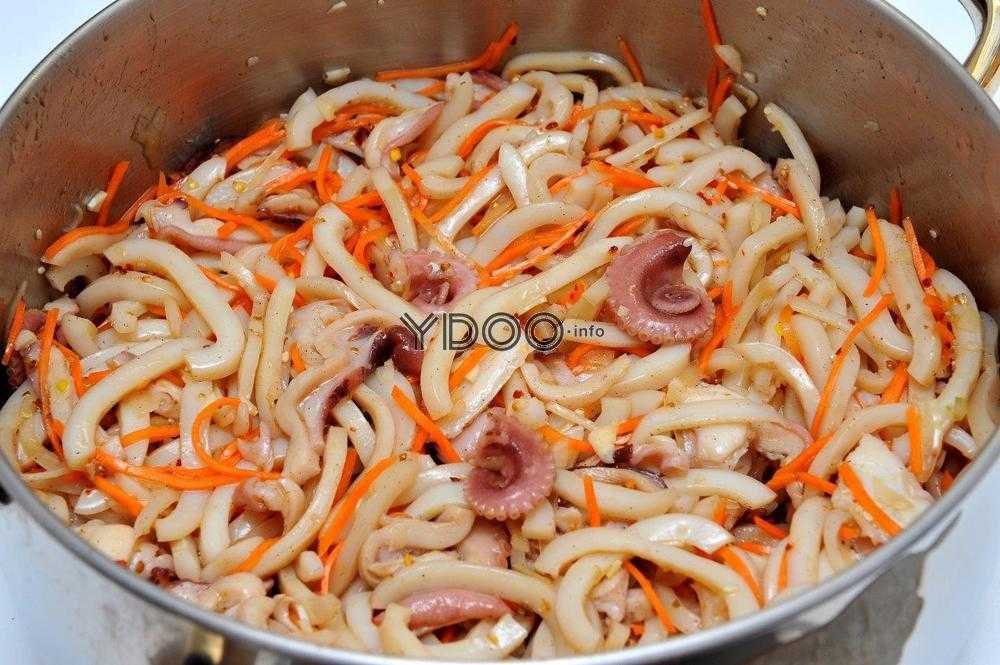 Порадовать близких можно спрутами, которые приготовлены с морковью по-азиатски. Нужно иметь: