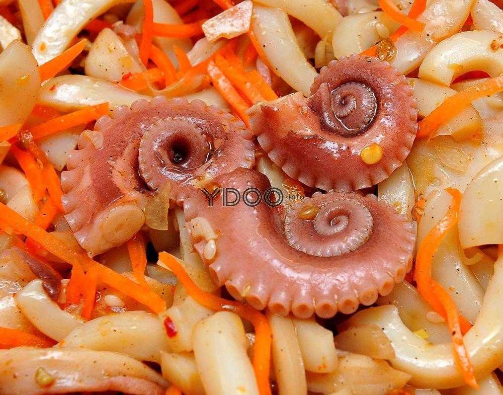 Иногда в магазинах можно встретить щупальца морепродукта. Не теряйтесь, поскольку цена их всегда радует, а салат по-корейски получается очень вкусным. Главное, правильно почистить основной ингредиент.