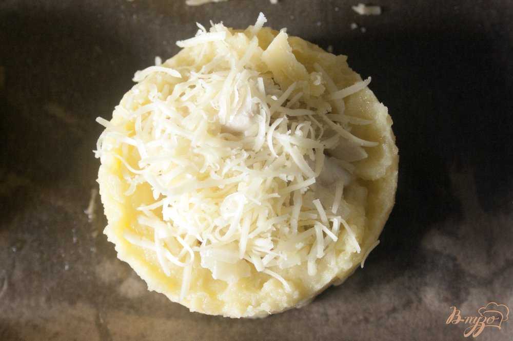 Шаг 10. В гнезда выложить грибную начинку, посыпать сверху сыром. Поставить в разогретую духовку на 20 минут.
