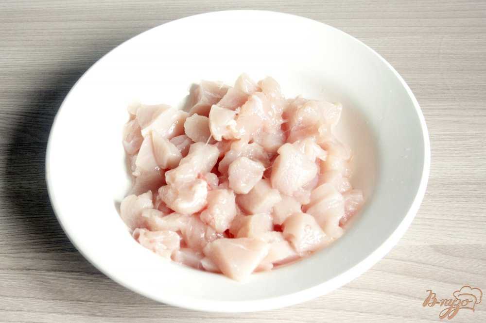 Шаг 3. Свежие грибы промыть, просушить и порезать небольшими кубиками.
