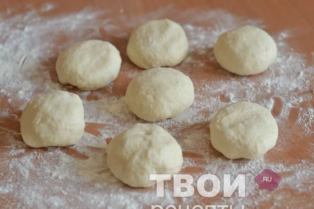 Разделите тесто на 10 кусков, скатайте в форме шариков, каждый обваляйте в муке.
