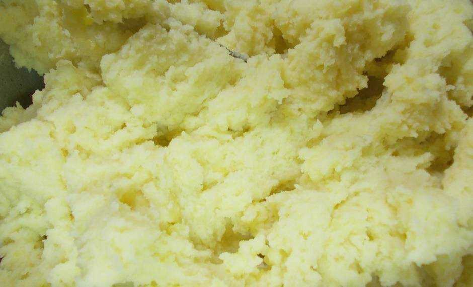 - Готовую картошку размять в пюре, чтобы не было комков. Когда немного остынет, смешать с мукой и яйцом.