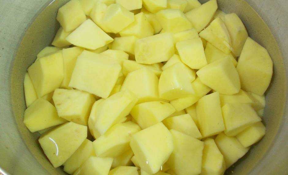 - Картофель промыть, чтобы смыть с него крахмал, залить водой и убрать на плиту вариться;
