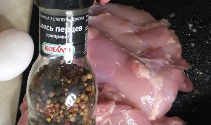 1. Филе освободите от остатков костей и лишнего жира. Каждый кусочек слегка отбейте для мягкости. Посолите, поперчите, приправьте и оставьте на 20-30 минут мариноваться.