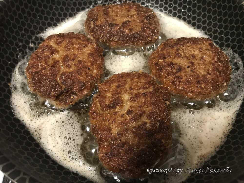 Обжариваем котлеты до румяной корочки с двух сторон.