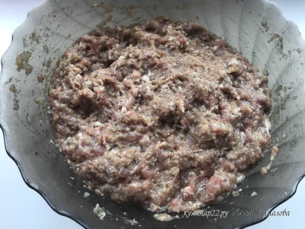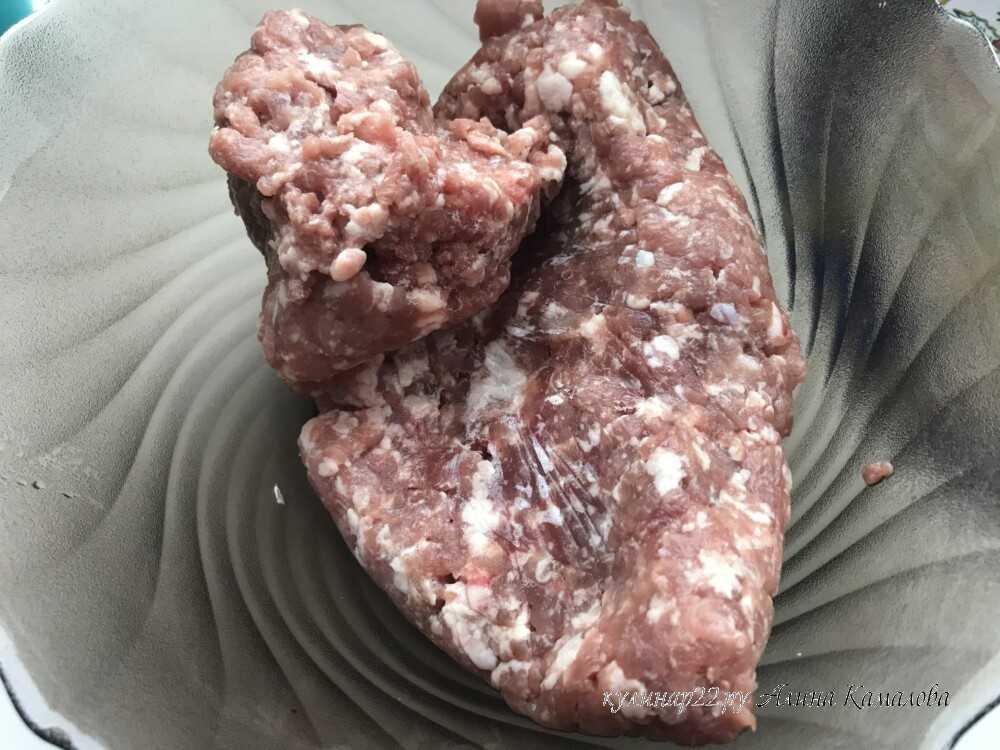 Фарш был подготовлен заранее, оставалось только его достать из морозильной камеры и разморозить.