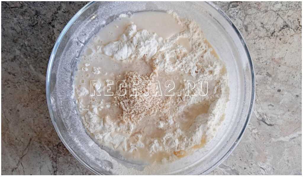 3. Затем добавляю еще часть муки с ней уже соль. Потом снова мука и замешиваю однородное тесто.