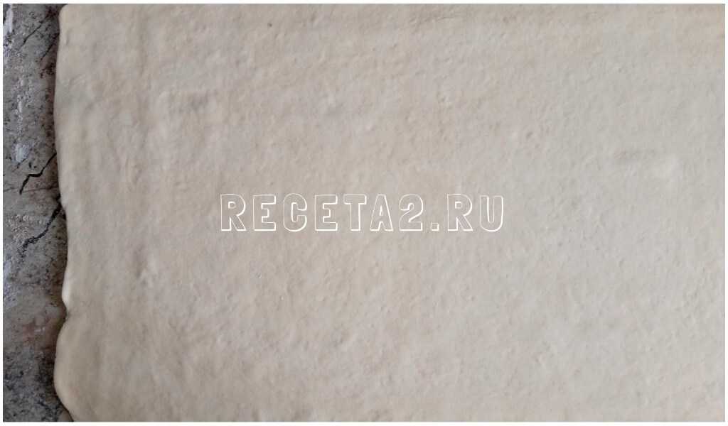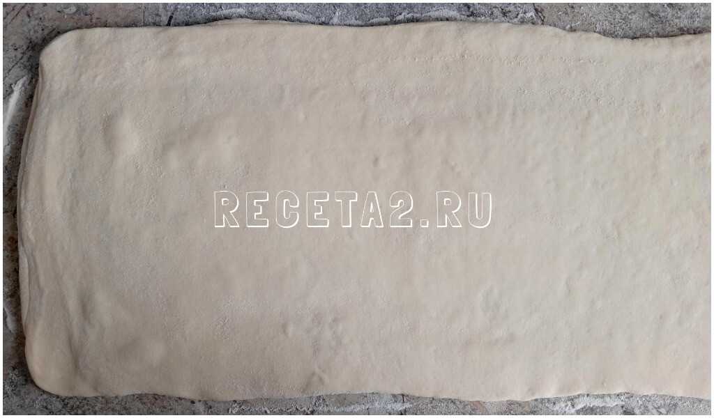 Поворачиваем по часовой стрелке тесто (ребро справа) и раскатываем прямоугольный лист, толщиной 5 мм.