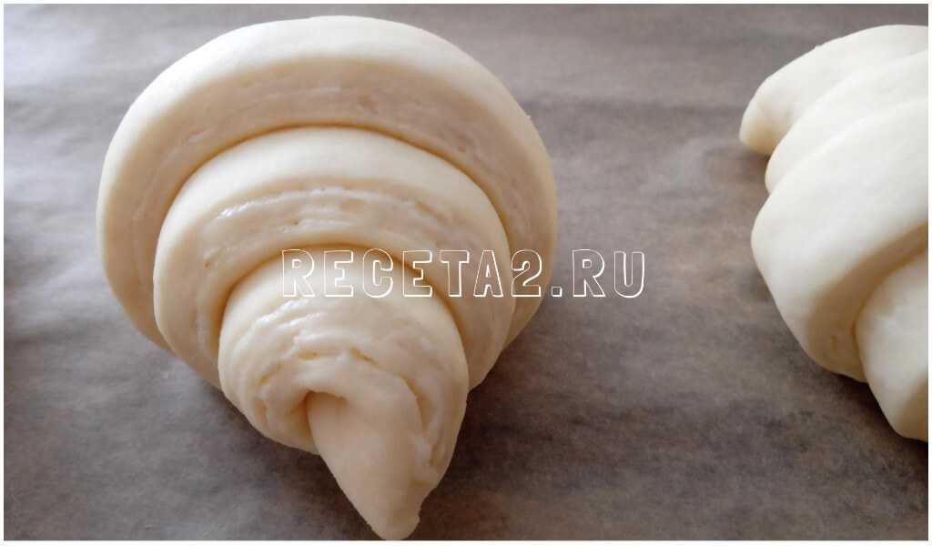 - Сворачиваем круассаны и выкладываем на противень.