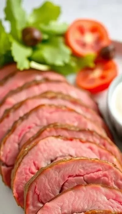 - Нарезка: Нарежьте крученую говядину тонкими ломтиками и подавайте к столу.