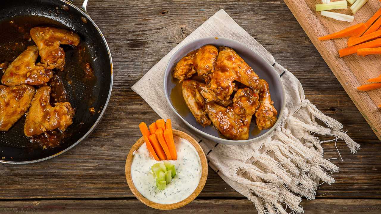 Куриные крылышки Баффало — культовое блюдо американцев. Готовят их повсеместно — на домашних пикниках, в ресторанах, пабах и спортивных барах. Подают крылья Баффало с самыми разными дипами, например, с соусом Блю Чиз, но есть среди них традиционный — фирменный соус Баффало с острым красным перцем, который идет в спровождение всегда. В компанию к крыльям обычно также идут нарезанные соломкой овощи — морковь и сельдерей.