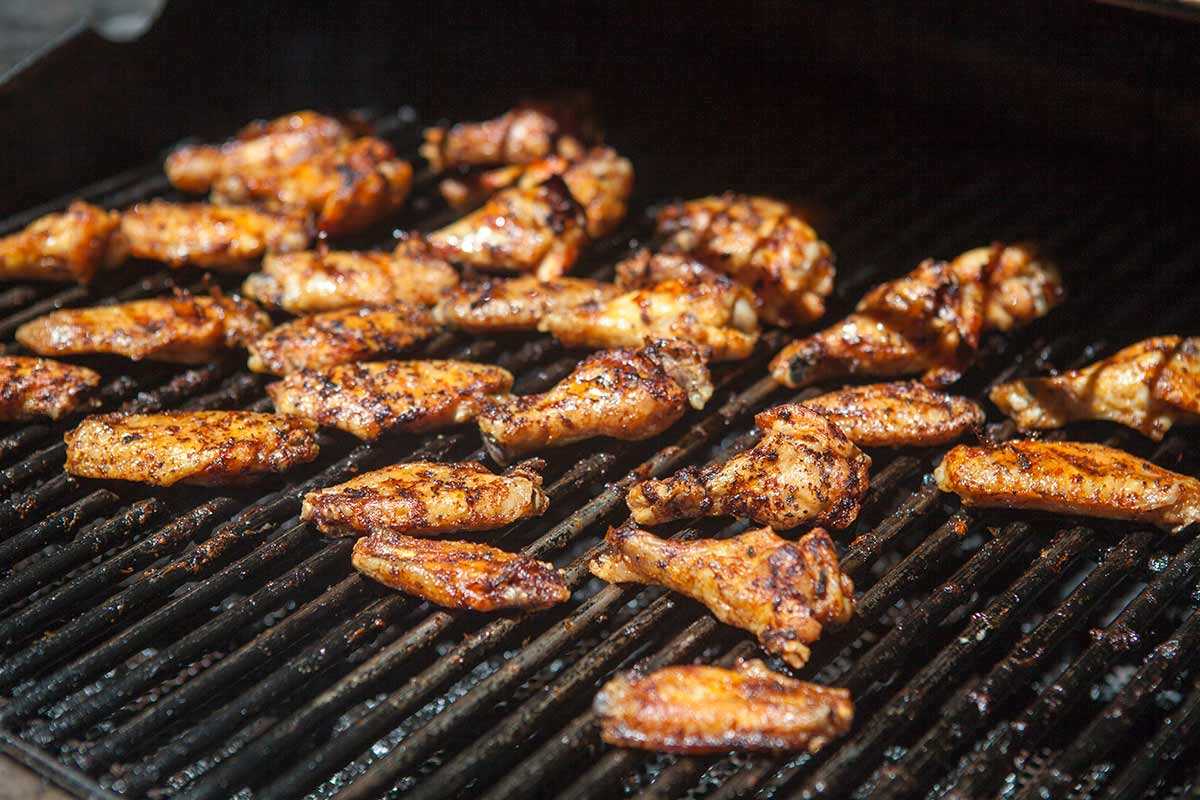 Если вы запекаете крылышки на гриле или мангале, то выложите их на хорошо разогретую решетку и жарьте до готовности 15-20 мин. Крылья нужно часто переворачивать, чтобы соус не подгорел, а запекся в глазурь. Поэтому лучше использовать двойную решетку с замком.