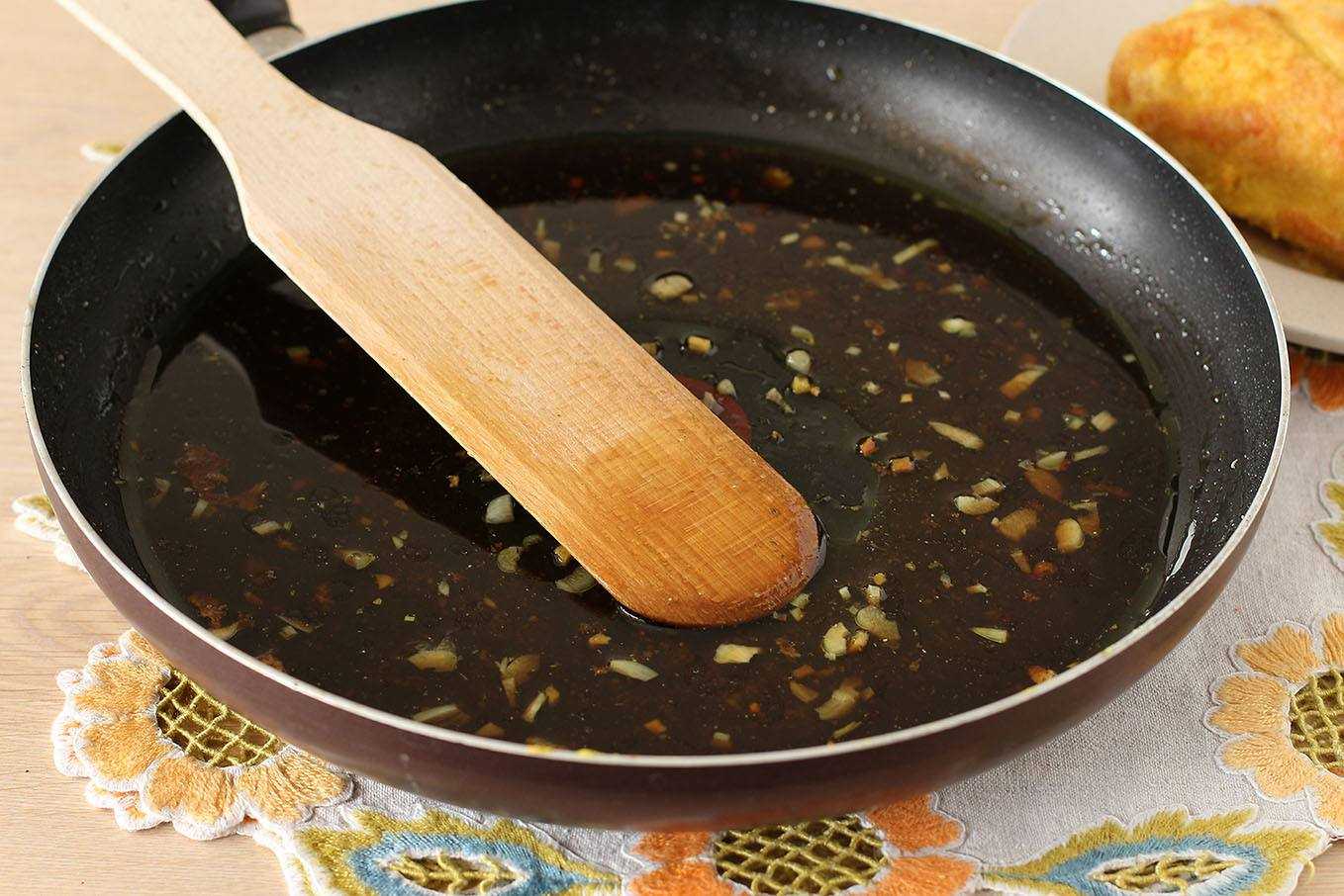 Добавьте соевый соус. Здесь сложно ошибиться — 100 грамм будет достаточно.