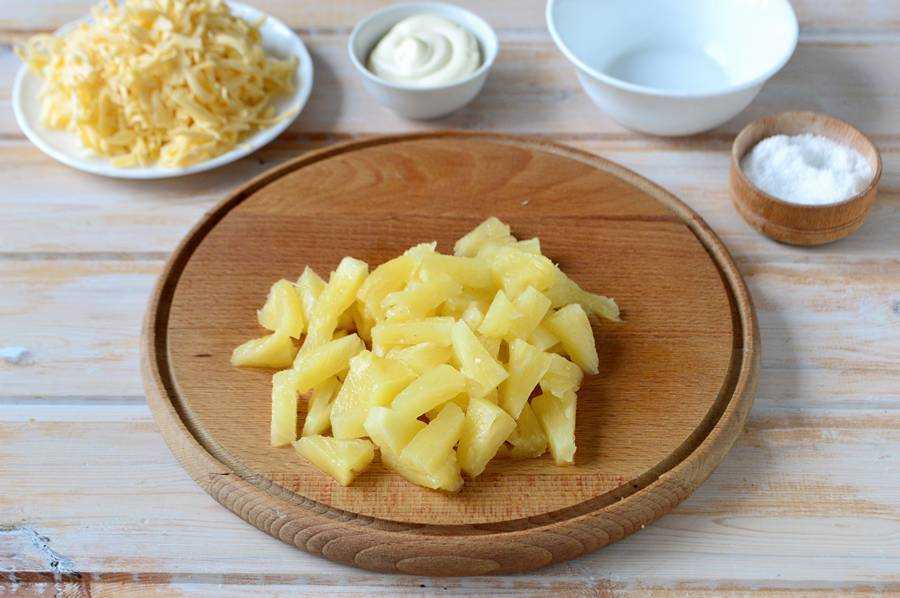 Этот вариант очень вкусный. А поскольку он готовится для праздника, то обзаведитесь хорошим сыром типа Гауда или Маасдам и свежим ананасом.